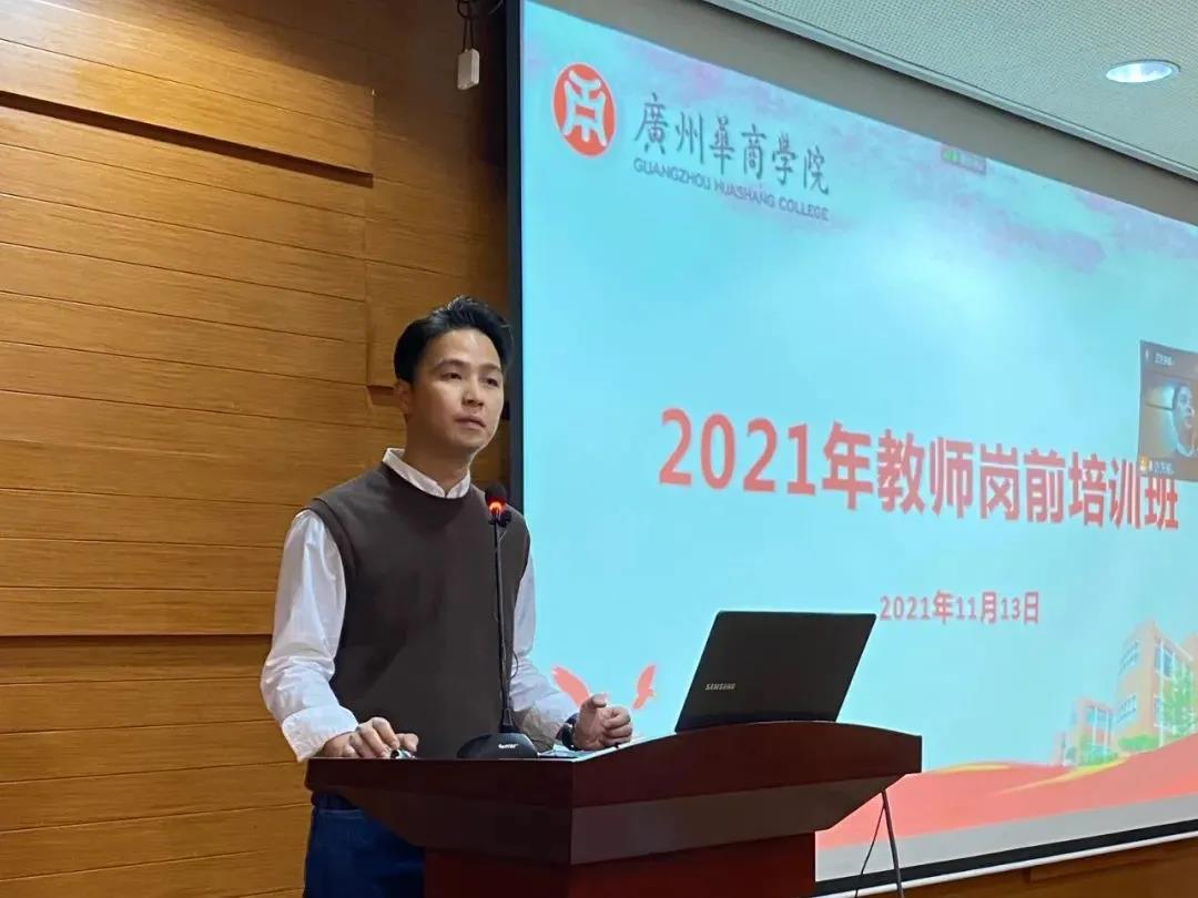 2021年11月13日上午,广州华商学院2021年教师岗前培训班在增城校区中央图书馆一楼学术报告厅正式拉开帷幕,四会校区以线上直播的方式于8号楼108实时进行。本次岗前培训由教师发展中心和继续教育学院联合主办,两校区共128名新入职教师参加。