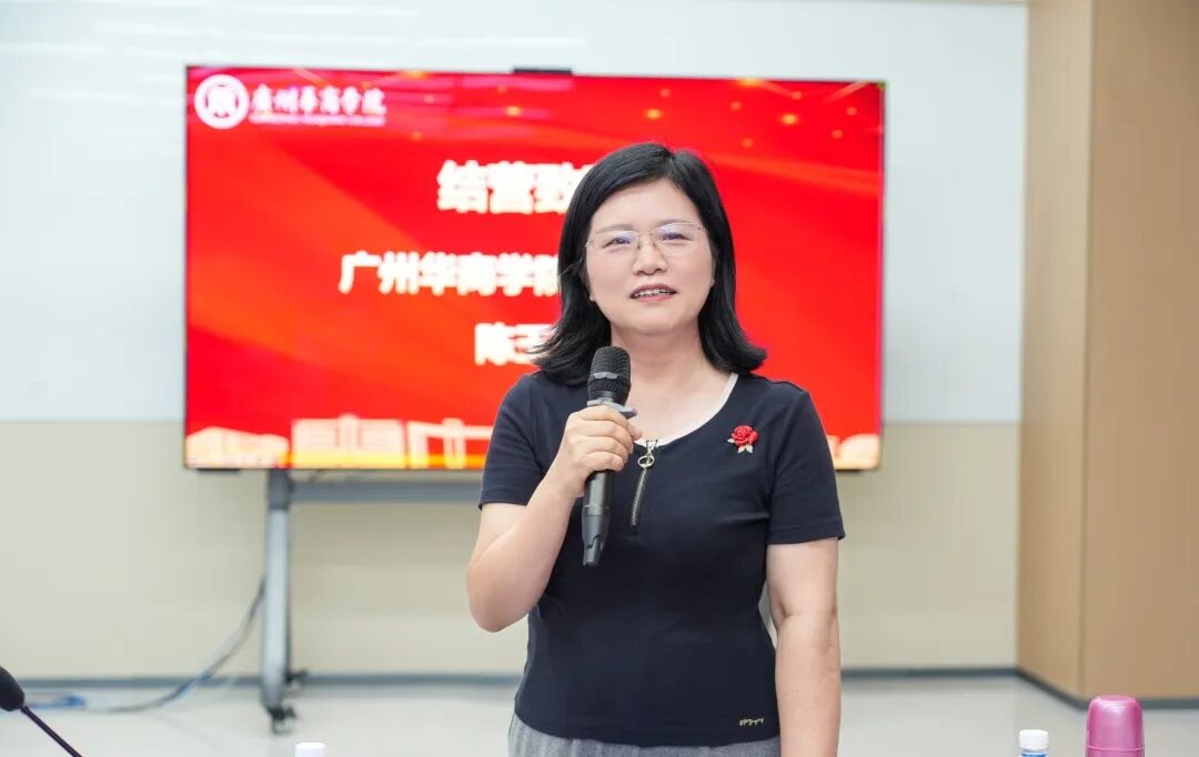 广州华商学院党委书记陈玉欢深情回顾训练营历程。自去年 12 月启航,历经理论学习、实战淬炼等阶段,至今年 7 月圆满收官,这一过程凝聚着导师、学员与工作人员的心血,她向各方致以诚挚谢意。