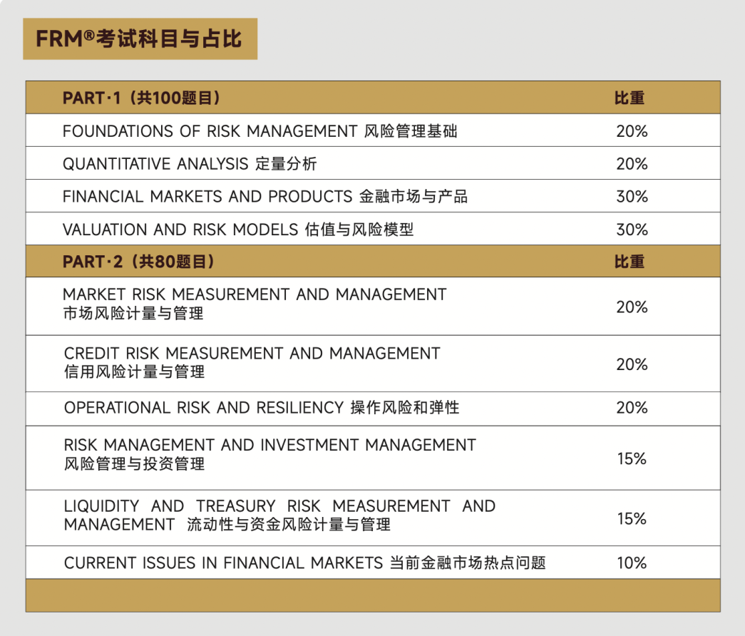 FRM共有两个部分的考试,题型均为单项选择题,第一部分考试由100道单选题组成,第二部分考试由80道单选题组成,每题权重相同。2023年FRM第一部分和第二部分考试均采用机考(CBT)模式。每一部分的考试时间均为4小时。