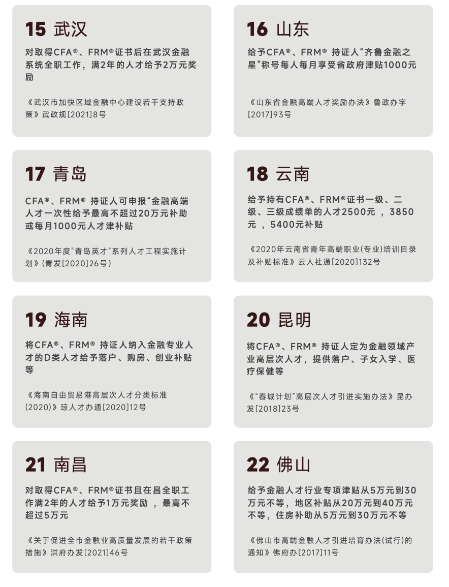拥有CFA、FRM证书的持有者待遇普遍较好,雇主更愿意为他们提供高额奖金。