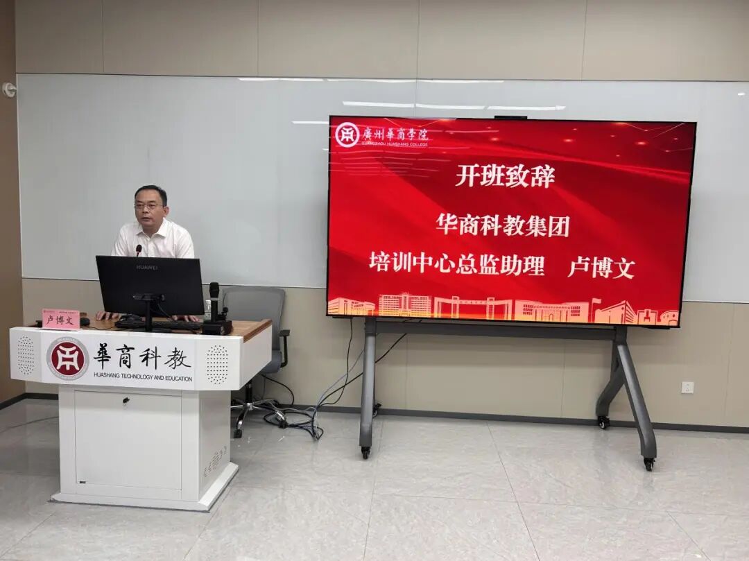 主持人向学员详细介绍了本期培训的课程内容与日程安排。华商科教集团培训中心总监助理卢博文发表开班致辞,对各位学员的到来表示热烈欢迎,并希望大家带着问题来、带着方案走,用AI思维重新定义效率,用技术赋能创造十倍价值。