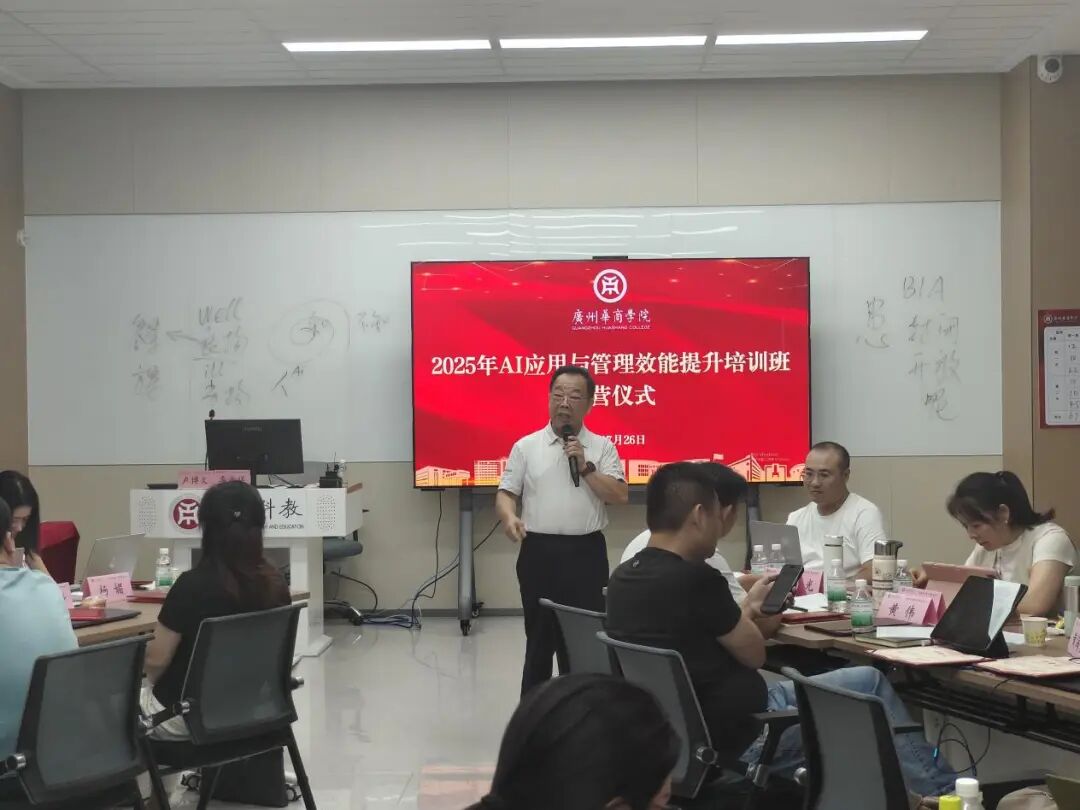 7月25日,广州华商学院2025年“AI应用与管理效能提升”培训班开班仪式在广州华商学院广州校区弘美楼310顺利举行。广州华商学院客座教授季益祥老师、华商科教集团培训中心总监助理卢博文和来自广东省农业农村厅、广州托泰实业集团、科技金融研究院、广州华商学院校友、广州华商学院校企及合作集团等单位的全体学员参加仪式。