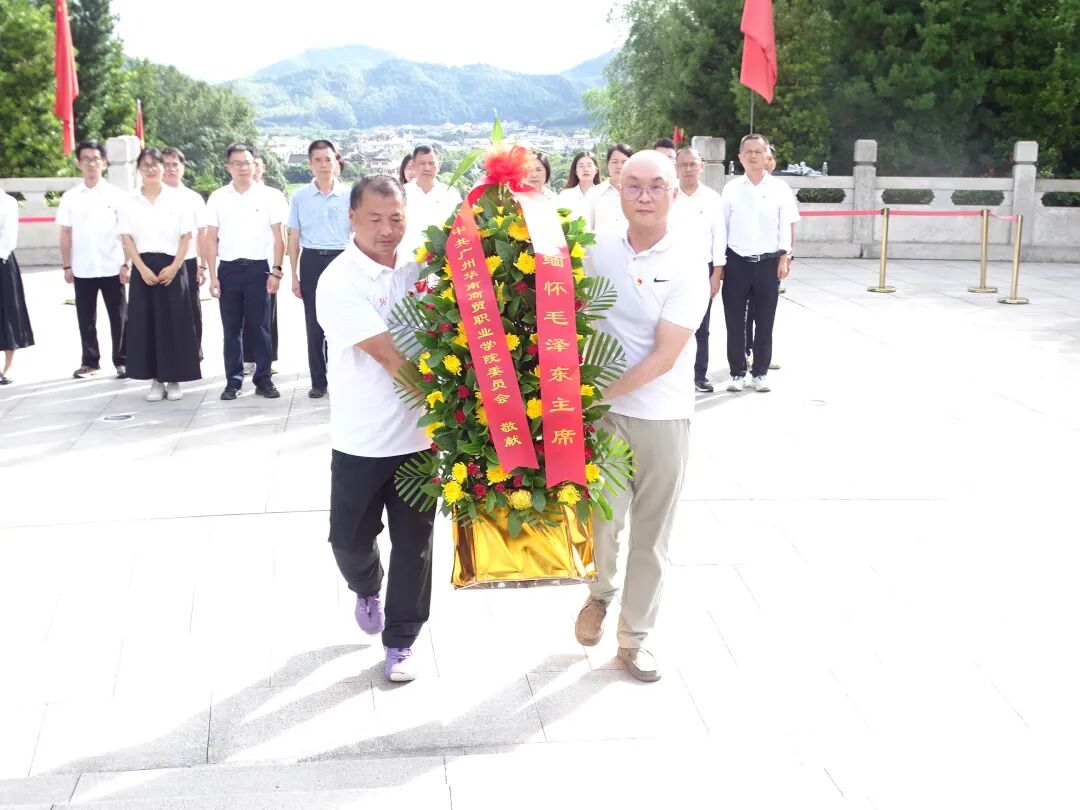 在瞻仰主席园时,全体人员敬献花篮、默哀致敬,缅怀革命先烈为真理献身的崇高气节。