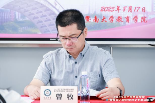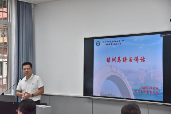 8月19日17时10分,广州华商学院AI赋能新入职教师教学专题培训班结业仪式在暨南大学教育学院104室举行。广州华商学院教师发展中心主任杨俏文与暨南大学教育学院副院长曾牧共同出席,与学员们齐聚一堂,回顾学习历程,见证成长收获。