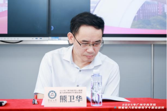 2025年8月17日上午9时30分,AI赋能新入职教师教学专题培训班开班仪式于暨南大学石牌校区教育学院104室正式举行。两校领导齐聚一堂,暨南大学教育学院院长熊卫华、暨南大学教育学院副院长曾牧、广州华商学院教师发展中心主任杨俏文和广州华商学院继续教育学院院长助理谢伟武出席仪式。
