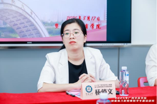 杨主任特别感谢暨南大学及相关工作人员对本次培训的支持,同时强调在暨南大学开展广州华商学院新入职教师进行培训的重要意义,并提出相关培训要求和目标;此外,杨主任特别提到,广州华商学院后续将陆续举办多期专题培训班,希望大家结合自身工作需求和发展规划,积极关注并报名参加,通过持续学习不断提升综合素养。