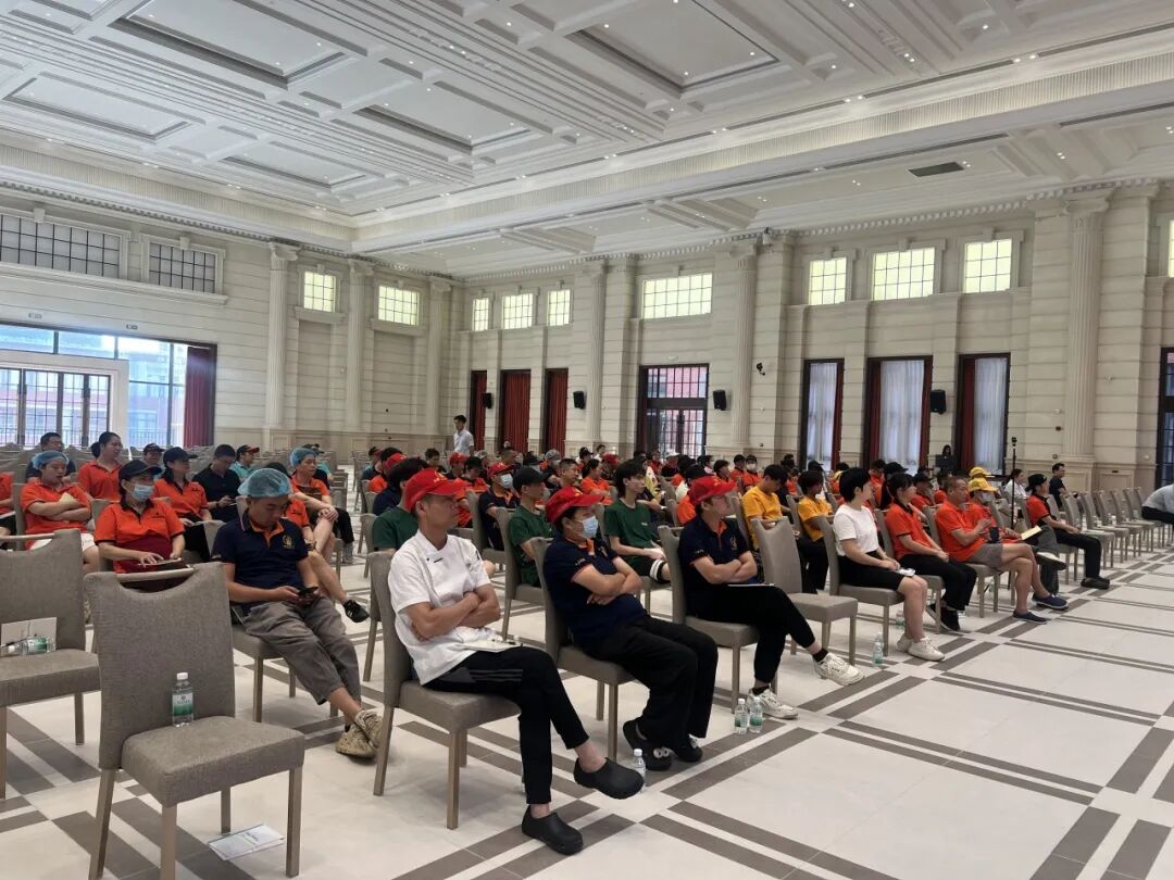 为系统性补强商业后勤服务人员在综合能力、食品安全操作、环境清洁规范、法律法规认知、服务意识及生产安全管理,全面提升后勤服务专业水平,2025年华商科教集团后勤人员专项能力提升培训于广州校区国际会议中心华僖礼堂顺利收官。本次培训覆盖商铺运营、食堂管理及校园服务中心等后勤关键岗位,200余名从业人员全程参与,实现专业知识与实操能力的双重进阶。